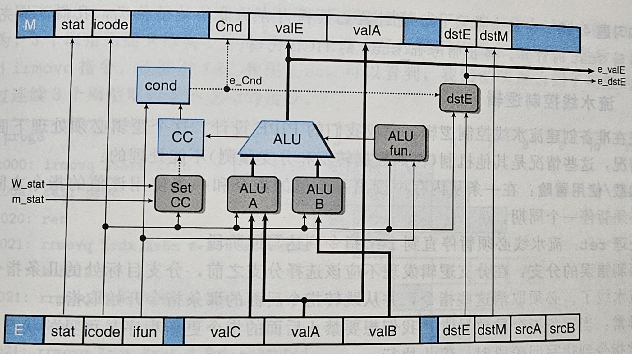 - E 保存译码阶段后的指令的信息以及从寄存器中取出的值,用于执行阶段