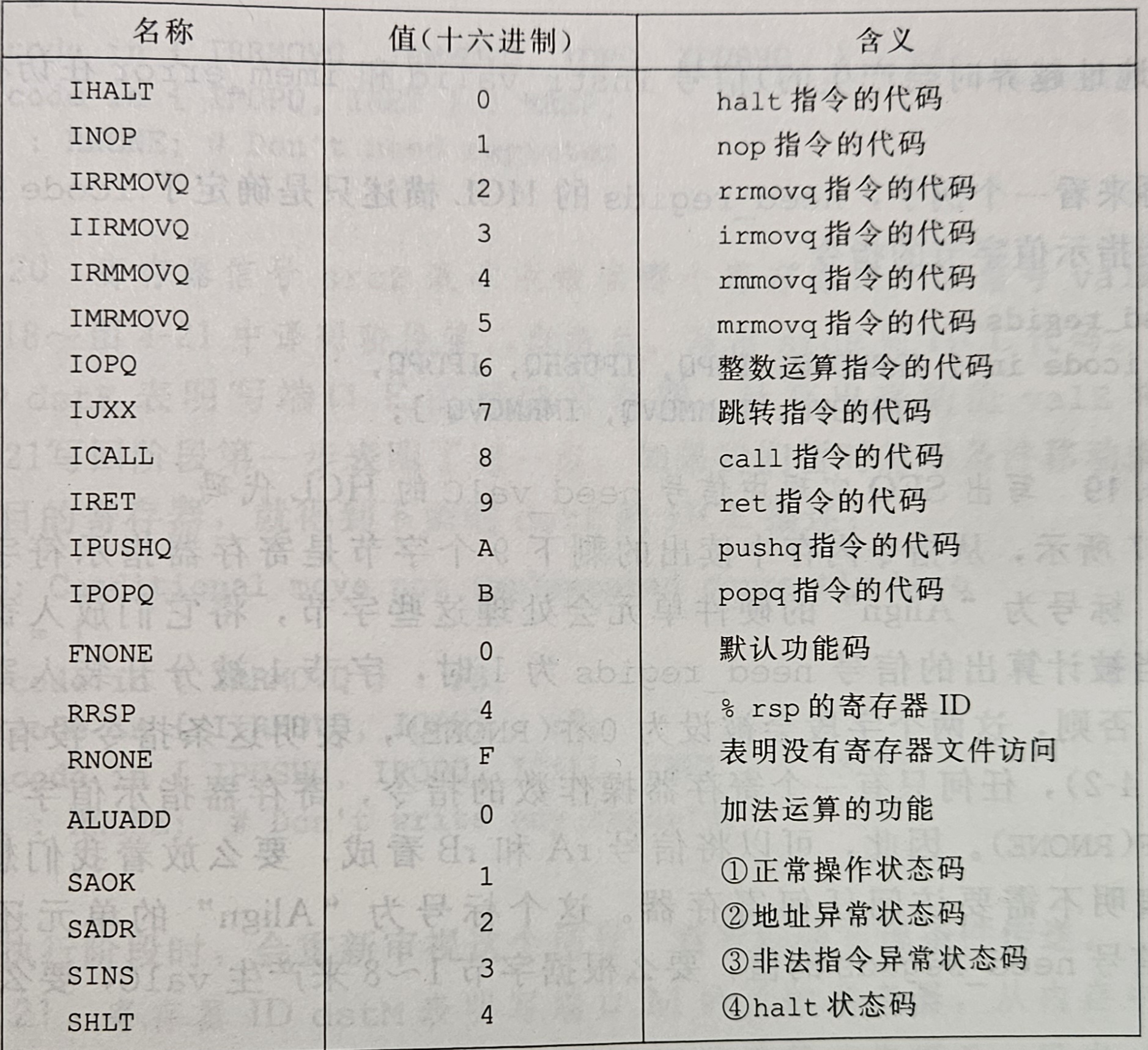 以下为 Y86-64 指令集字节级编码: