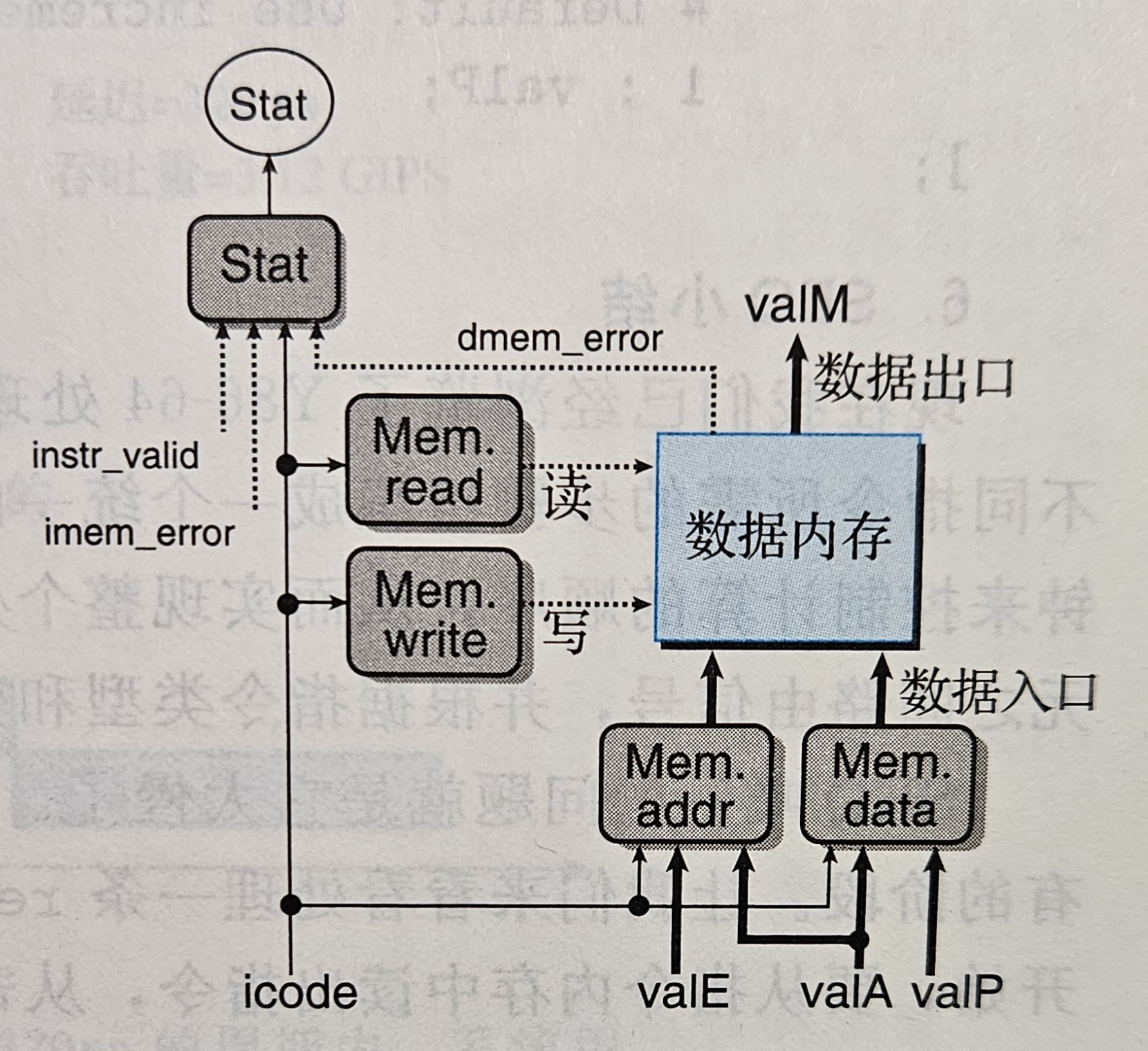 - M 保存执行阶段后的指令的信息以及 ALU 计算结果和条件码,用于访存阶段
